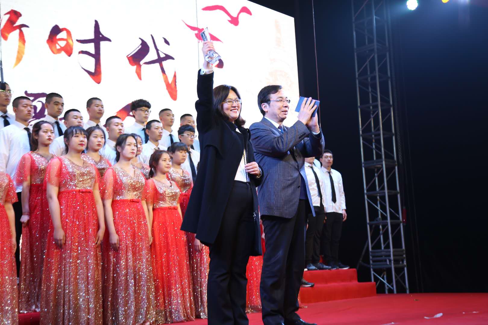 曹庆年校长为青春歌会获奖单位颁奖