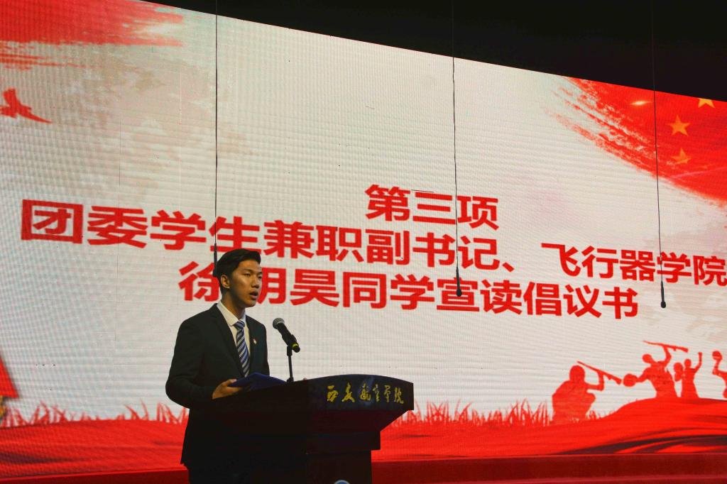校团委学生兼职副书记、飞行器学院徐明昊宣读倡议书