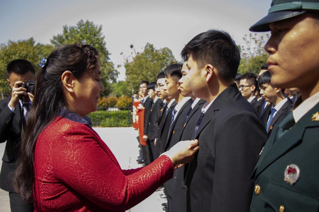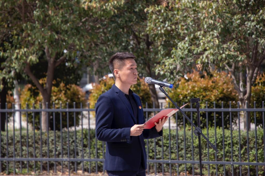 优秀团员代表、机械工程学院李嘉豪同学作题为《青春心向党 放飞新梦想》团旗下的演讲。党委副书记谭少敏为新团员佩戴了团徽,全体师生重温入团誓词。谭少敏寄语团员:希望青年们能坚定理想信念、坚守党旗所指就是团旗所向;坚持“强三性去四化”,持之以恒加强作风建设;传承红色基因,发扬革命传统,以优异的成绩向五四运动100周年,中华人民共和国成立70周年献礼。
