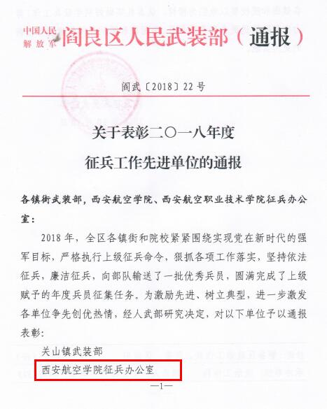 近日,中共西安市莲湖区委、区人民政府、区人民武装部,阎良区人民武装部通报表彰了2018年度武装工作先进单位和个人,贝博官网荣获莲湖区、阎良区2018年度征兵工作先进单位。