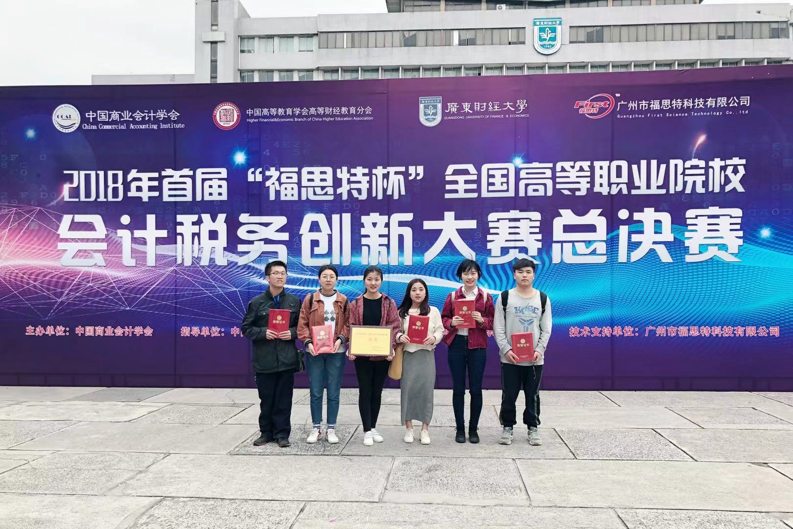 12月8日,2018年首届“福思特杯”全国大学生会计税务创新大赛总决赛在广东财经大学拉开帷幕。贝博官网经济管理学院王玥、王晓光两位教师指导并带领财务管理专业师雨、李蒙丹、薛静、龙宋滔、梁小龙五名同学代表学校参加了本科组比赛,获得全国本科组团体二等奖,王玥、王晓光获“优秀指导教师奖”。