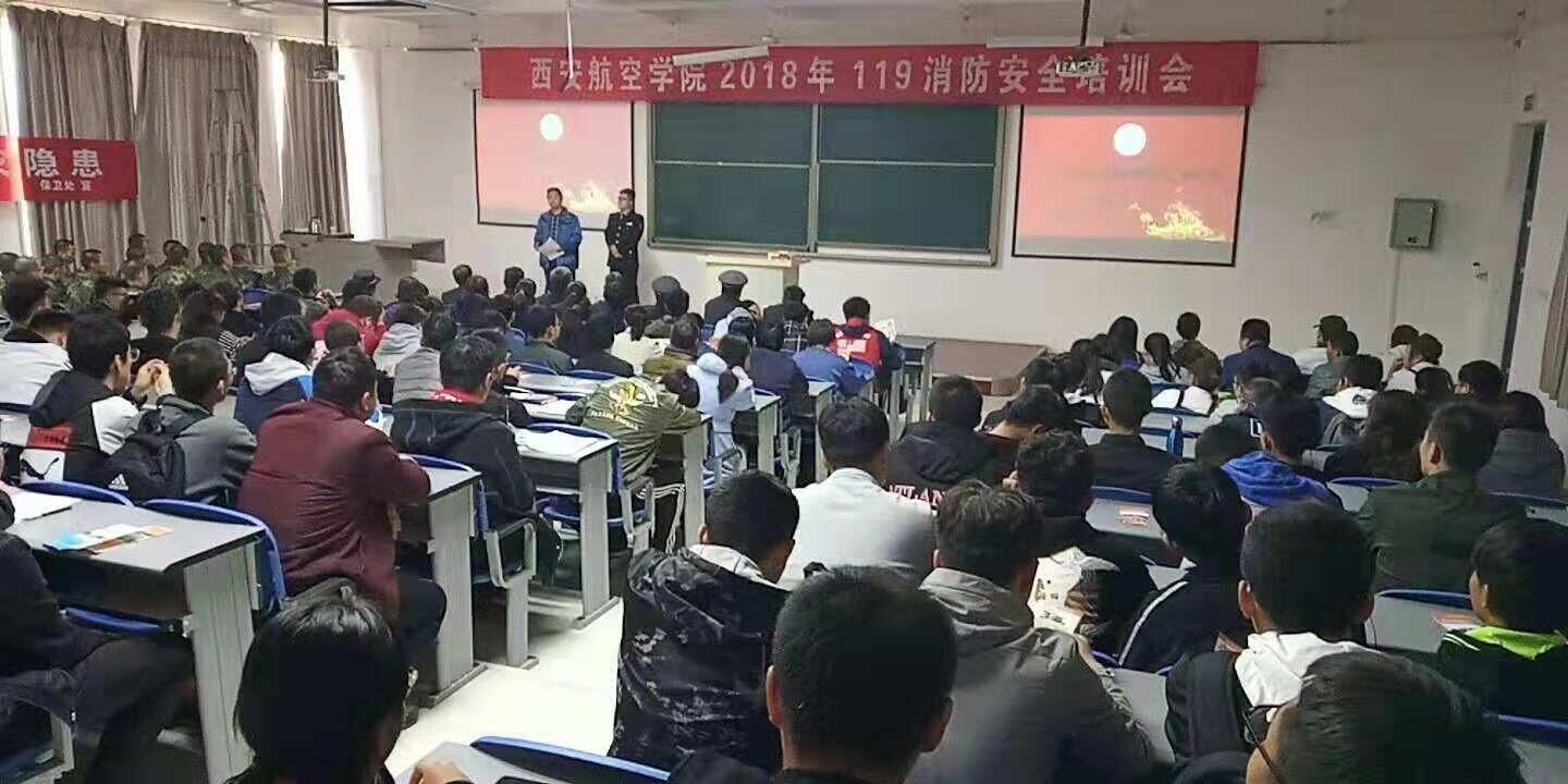 ——举办消防知识专题讲座。保卫处分别在两校区举办教职工及大一年级宿舍舍长消防安全讲座,邀请专业消防公司讲师以案说法,现场操作培训,增强师生防火安全意识。国资处、校办工厂、网络信息中心、机械工程学院等单位结合本单位实际情况,自主联系开展消防培训7场,进一步拓宽了消防知识的受众面。