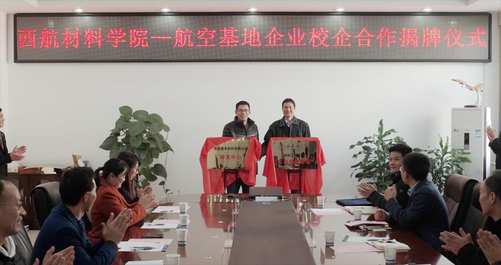 11月22日下午,材料工程学院在阎良校区举行“西航材料工程学院-航空基地企业校企合作”揭牌仪式。西安皓森精铸有限公司总经理潘建宇,西安康本材料有限公司董事长刘建军,西安嘉业航空科技有限公司副总经理布国亮,陕西航空精密合金有限公司总经理白云超,西安奥尔科复合材料研究所副总经理田新利,贝博官网材料工程学院党总支书记王永锋、院长谢辉及全体教师参加仪式。仪式由王永锋主持。