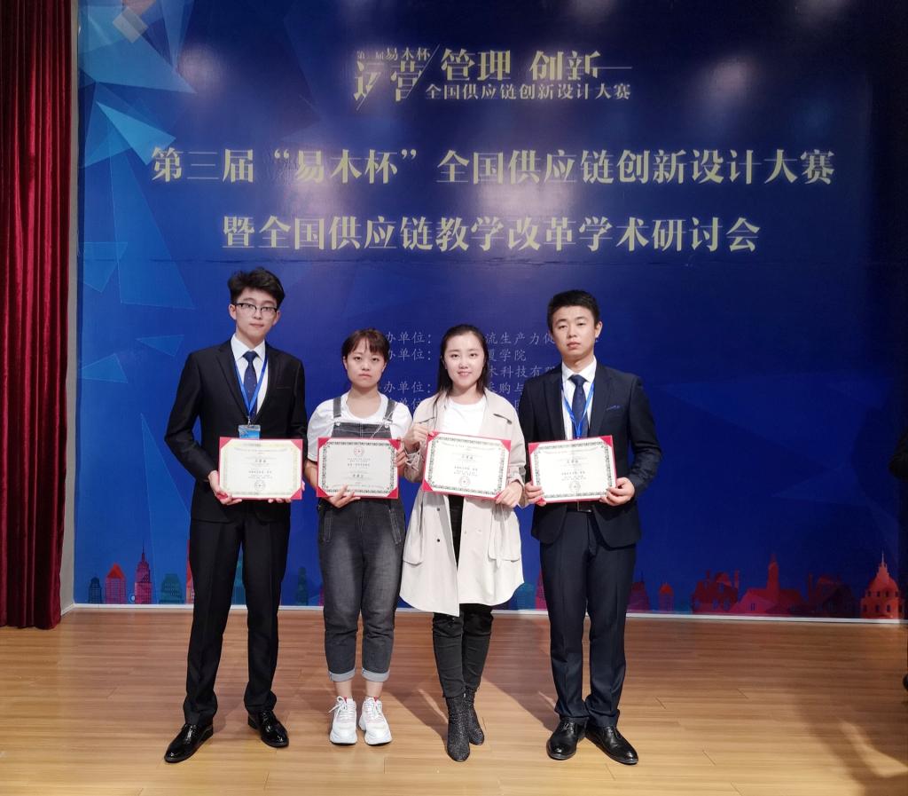 10月17日,第三届“易木杯”全国供应链创新设计大赛暨全国供应链教学改革学术研讨会在厦门华夏学院举行。本届大赛共有来自全国27个省市230所院校参加。经过102天的网赛角逐,以及方案设计、实战对抗赛、现场方案答辩三个环节的比拼,贝博官网经济管理学院物流1923班的徐鹏、崔萌、杜宇超三位同学荣获全国供应链大赛运营管理全国一等奖、创新设计全国三等奖等殊荣。