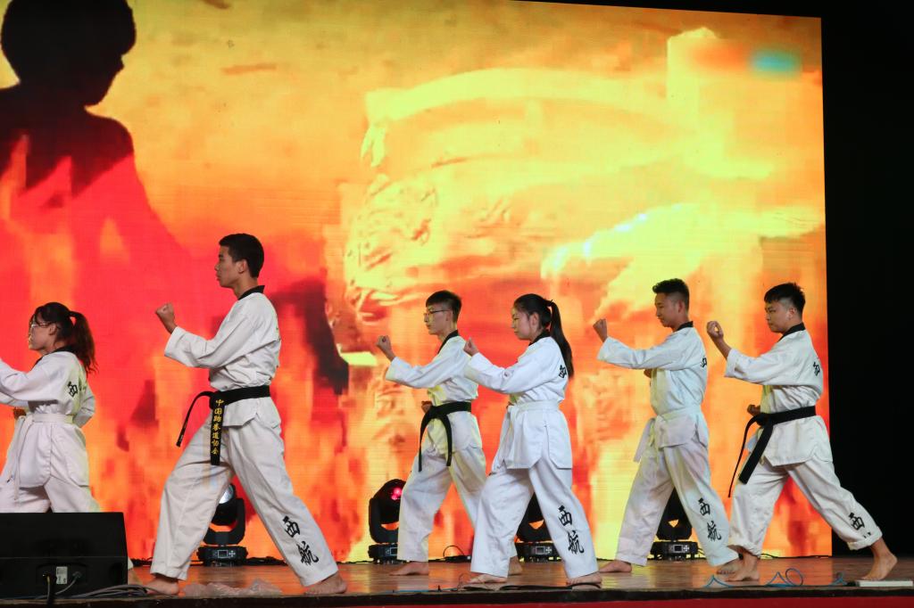 上篇“青春·芳华”中,表演者们用动感的音乐和舞蹈,彰显了当代青年学生的青春与梦想、激情与活力,也进一步号召了贝博官网青年走下网络、走出寝室、走向操场;健美操节目《青春律动》展示了韵律节奏的美,满溢青春与活力。古筝串烧中,婉转低沉的琴音,回响天际;武术节目《精舞跆风》一招一式尽显体育精神。