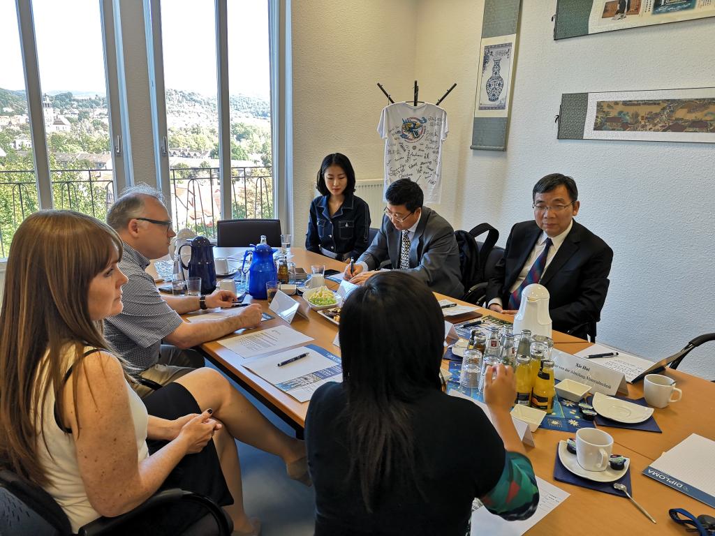 在北黑森应用技术大学访问期间,陈平社与该校校长MichaelaZilling教授就深化合作广泛深入交换了意见。陈平社介绍了中国先贤人才培养的理念和新时代人才培养要求,MichaelaZilling校长介绍了北黑森应用技术大学人才培养情况。双方认为两校在办学定位、人才培养等方面有很好的合作基础,开展合作办学五年来成效显著,希望两校进一步加强沟通交流,着力提升人才培养质量。