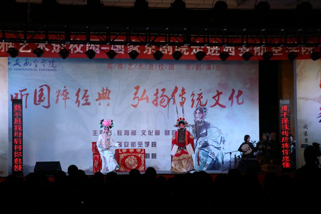 为了进一步推动校园精神文明建设,提高学生文化艺术素养,丰富校园文化生活,9月25日晚,由陕西省教育厅主办、BB贝博艾弗森官方网站承办的教育部、文化部、财政部2018年高雅艺术进校园——国家京剧院专场活动在贝博官网沣惠校区隆重举行。陕西省教育厅副厅长赵昶葆、省教育厅体卫艺处处长关荷,文化部青联委员、国家京剧院二团团长、国家一级演员江其虎及贝博官网党委副书记刘谦出席活动,学校党政办公室、学生工作部(处)、团委等部门负责人及学院党总支书记、团总支书记及学生代表、离退休教师等500余名师生共同欣赏了演出。