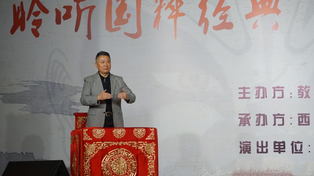 演出开始,刘谦代表学校向国家京剧院赠送国家一级作家、贝博官网人文学院院长高建群先生书籍手稿,表达对国家京剧院剧团的热烈欢迎。演出在一场别开生面的京剧知识大讲堂中拉开序幕,江其虎分别从京剧发展史、京剧唱腔、京剧场面及剧种、京剧行当、脸谱等方面作了深入浅出的讲解。讲座中,清唱与讲解相互呼应,伴随着司鼓、京鼓、乐队伴奏。国家一级演奏员谢光荣、赵建华、李中华和白洋、郭明月、宋云飞、张艳栋和杨杨等青年演员先后演绎了《三岔口》《趟马》《穆桂英挂帅》《四郎探母》《群英会》《李逵探母》等经典京剧片段。国家一家演员黄炳强和青年演员王珺带来京剧大戏《坐宫》,唱词抑扬顿挫、唱腔优美,通过精湛的表演技巧,将四郎思母、公主助力的情节表现的淋漓尽致,为大家送上了一场宏大的文化盛宴,使大家感受到了传统文化的魅力,提升了师生对国粹艺术的认识和审美能力。