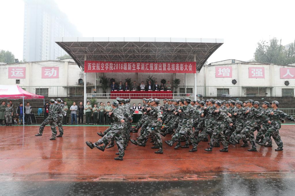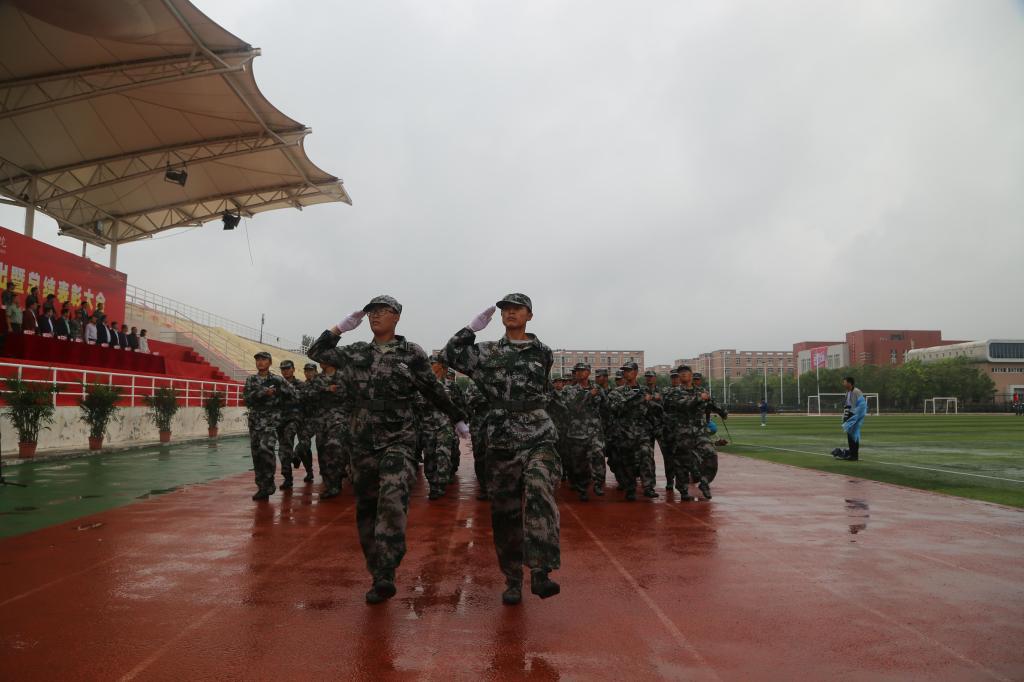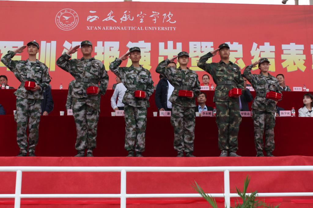 大会在歌唱祖国的歌声中落下帷幕。虽然下着大雨,汇报表演如期进行,广大参训学生所表现出的吃苦耐劳、坚忍不拔、严守纪律、奋勇争先的优良作风,充分展现了新时代西航学子良好的精神风貌。(文/学生工作部(处) 王晓燕 图/宣传部 学生记者团等)
