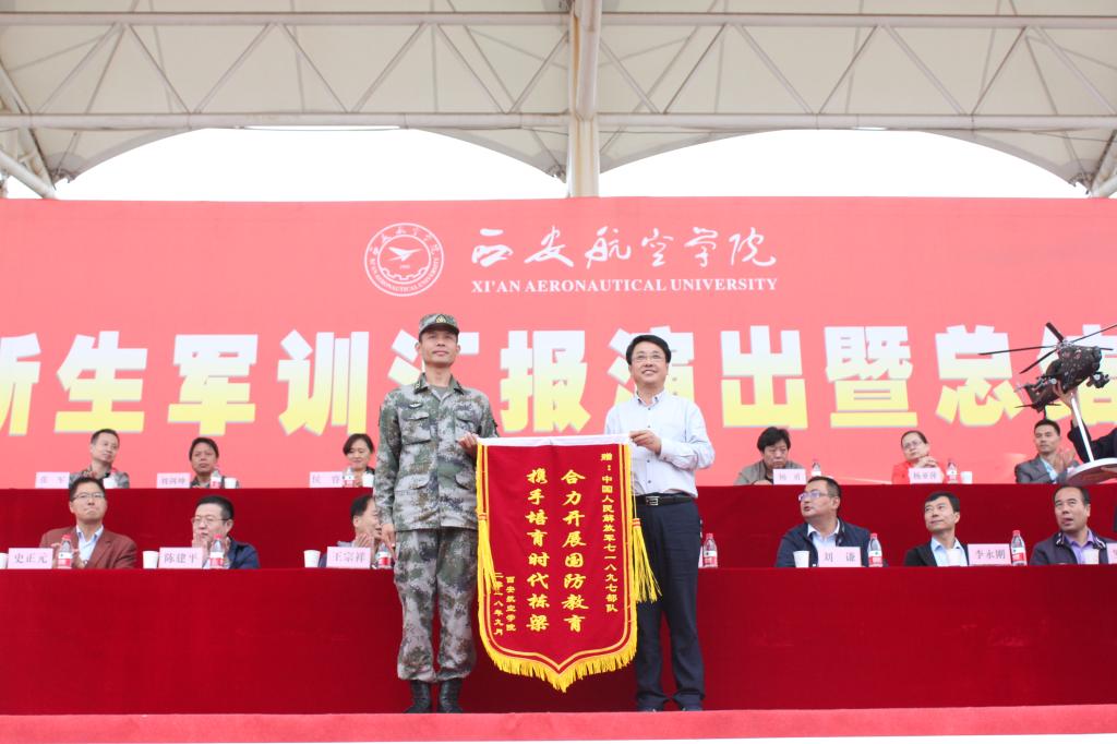 曹庆年校长代表学校向承训部队赠送了锦旗和纪念品。