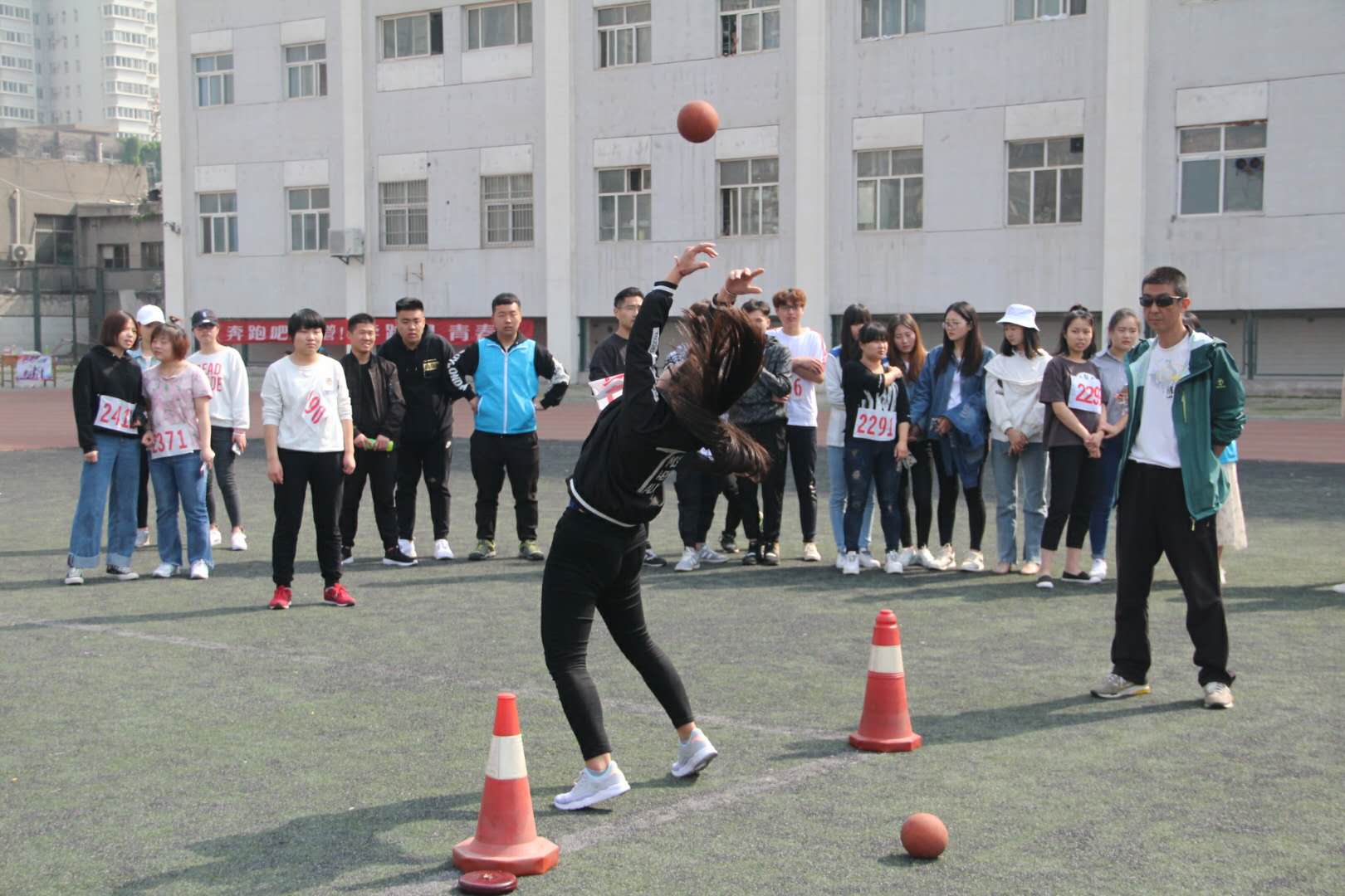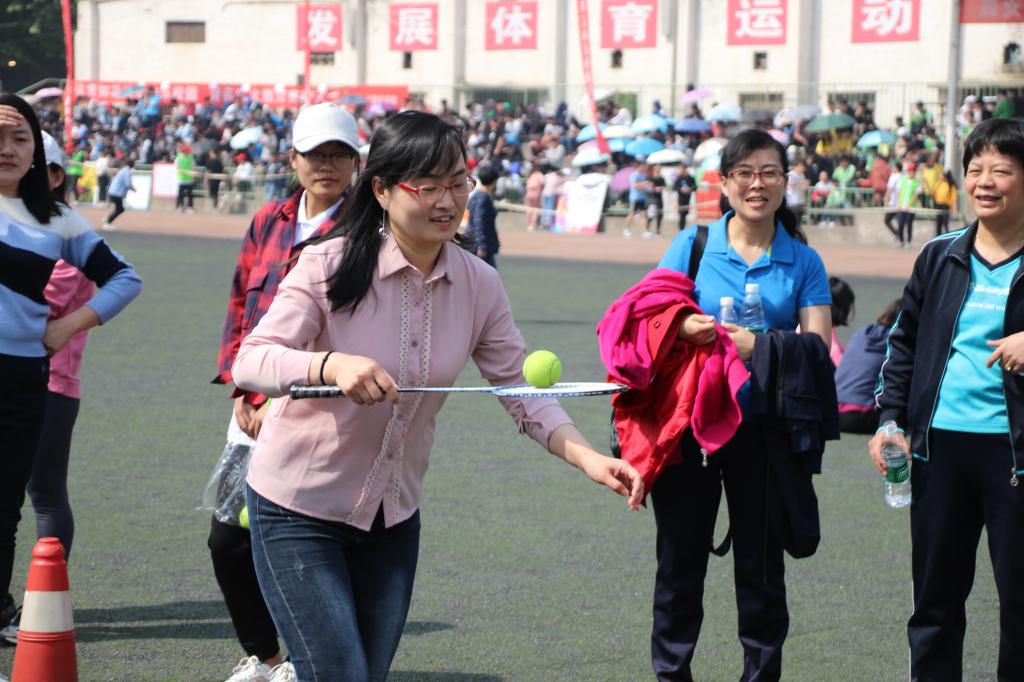 在本届运动会中,校工会和体育部专门为教职工设置集体铅球、六人托球跑接力、4乘100米混合接力、定点投篮、背抛实心球等15个比赛项目,全校18个分会共500余名教职工参加了此次比赛。
