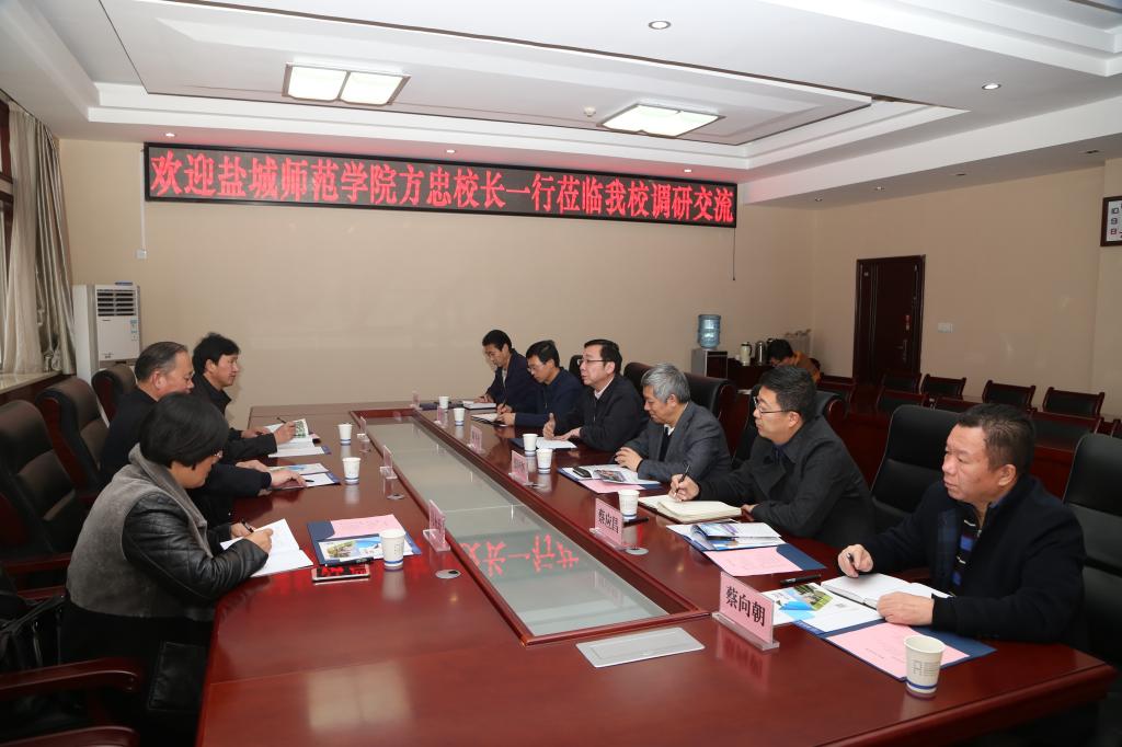 11月21日下午,盐城师范学院校长方忠,党委办公室、校长办公室主任邵从清,发展与改革办公室主任冯永玲等一行3人来贝博官网调研交流。学校党委书记陈平社、副校长张同怀、宋文学,党政办公室、教务处、发展规划处等部门负责人与客人进行了座谈交流。