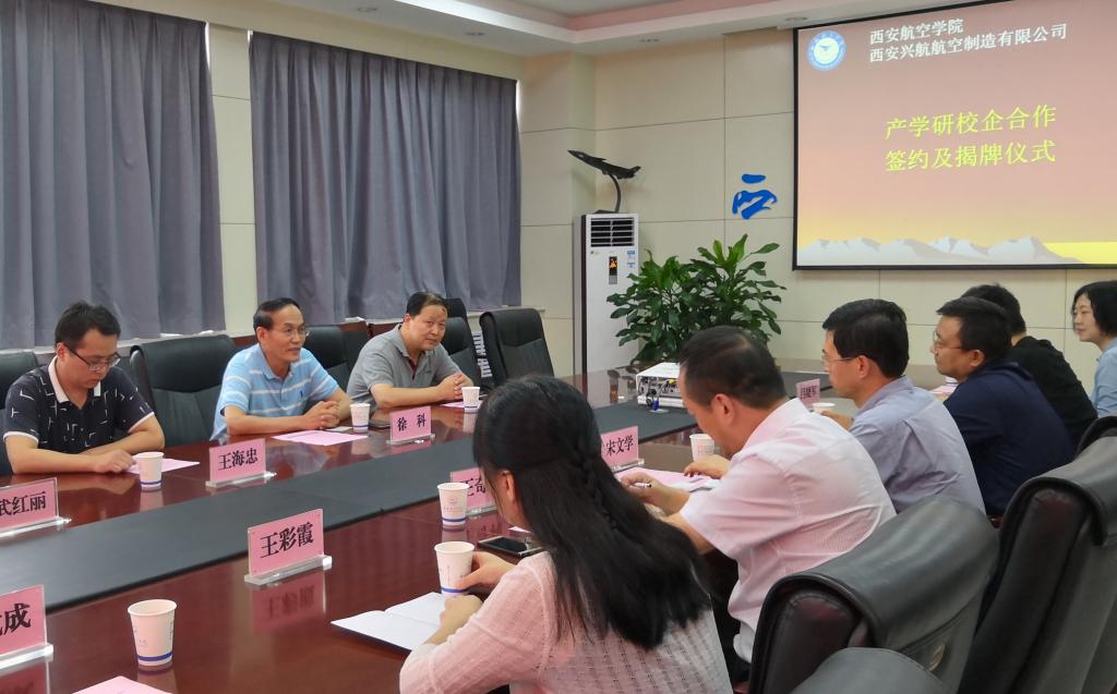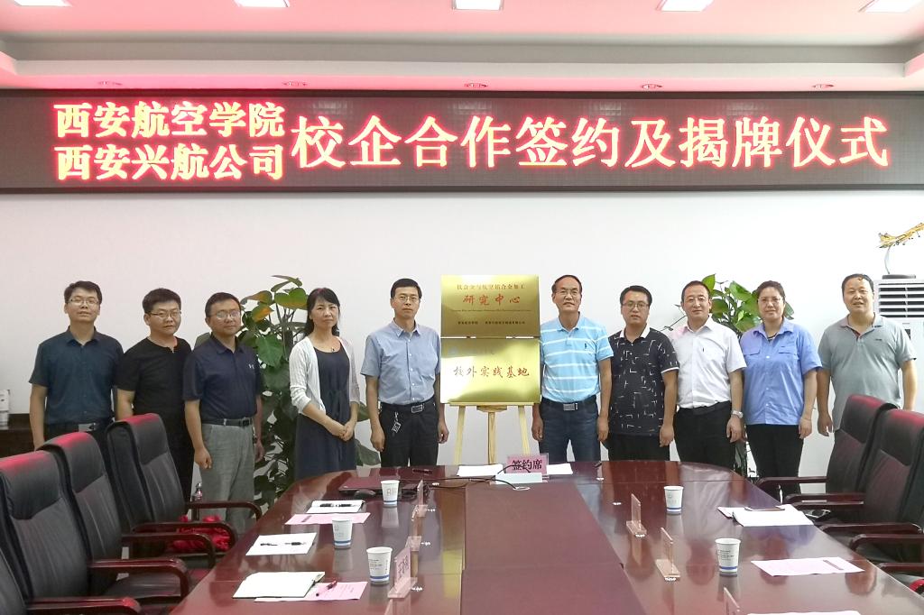 宋文学和徐科分别代表校企双方在合作协议上签字,并共同为校企共建“钛合金与航空铝合金加工研究中心”和西安兴航航空制造有限公司“BB贝博艾弗森官方网站校外实践基地”揭牌。