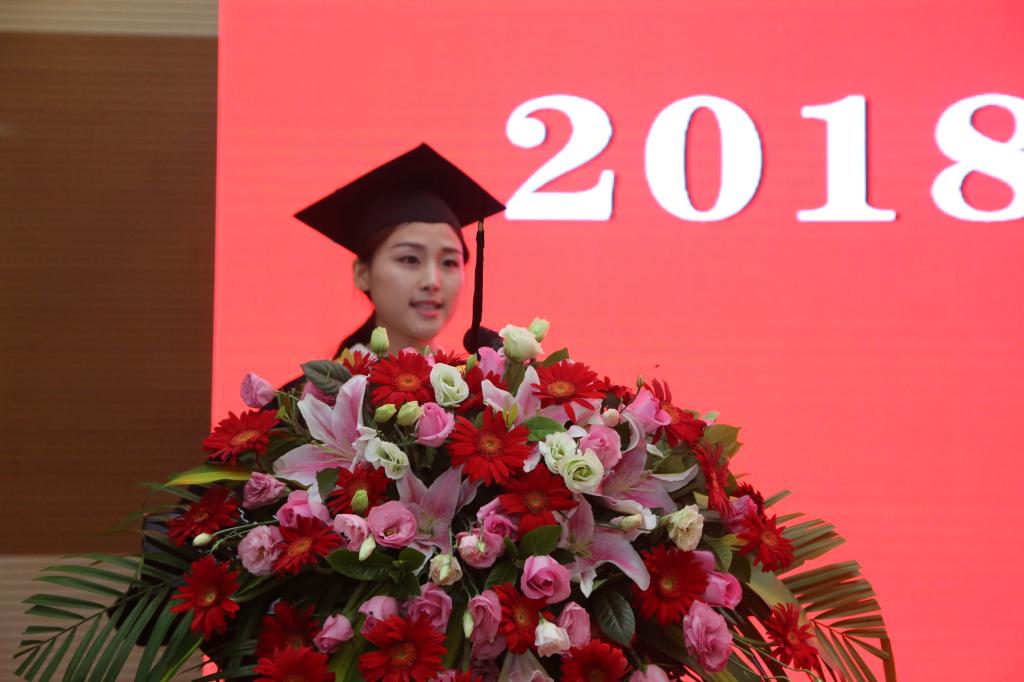 教师代表、省级教学名师王彩霞教授对毕业生提出了三点希望,一是要“为人,以德立本”。好的品德对人的一生受用无穷,希望同学们在未来的生活中“慎独、修德、笃行”。二是要“为业,大任无怨”。希望同学们立高远志,做奋进者,做担当者。三是要“为学,持之以恒”。希望同学们继续坚持读书,坚持学习,坚守初心,坚守美好。