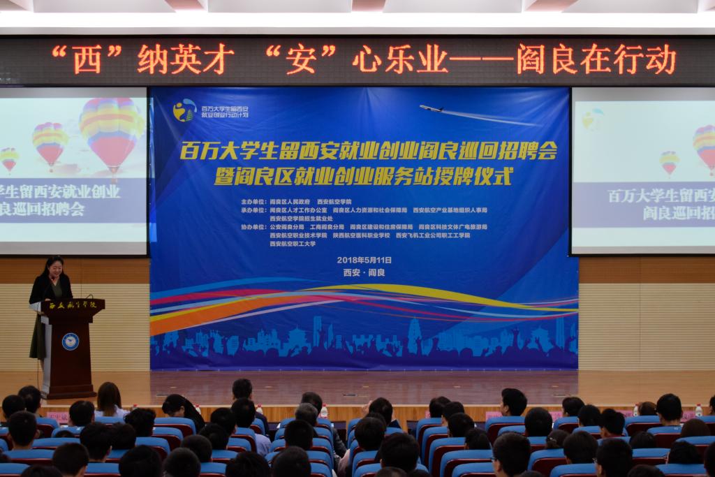 为贯彻落实中省以及西安市关于大学生就业创业的各项服务工作,深入实施“百万大学生留西安就业创业5年行动计划”,5月11日上午,由阎良区政府和贝博官网共同举办的“百万大学生留西安就业创业阎良巡回招聘会”暨阎良区就业创业服务站授牌仪式在贝博官网阎良校区报告厅举行。