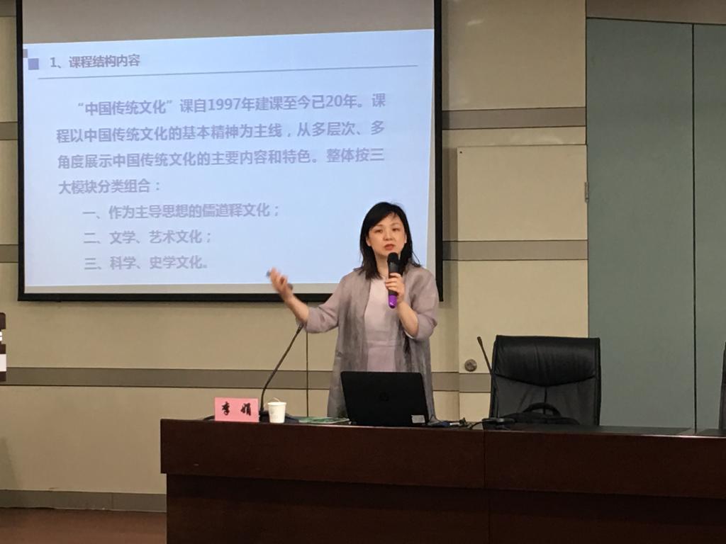 李娟老师负责的《中国传统文化》课程先后荣获“2017年国家精品在线开放课程”“省级精品课程”“省级精品资源共享课程”“省级改造升级精品课程”。李娟结合《中国传统文化》在线课程建设,从课程建设方法、课程内容的组织、课程教学方法的变革、课程资源的建设、视频的录制、线上线下教学等方面,全方位展示介绍了MOOC的建设过程。以该课程目前的教学现状为例,讲授了《中国传统文化》课程在传统课堂、线上教学、线上线下混合式教学三种不同教学方法改革的具体案例,生动有趣,教学效果突出。李娟指出,在线开放课程(MOOC)建设为大家带来的不仅仅是一门课程的建设,它带来的是一个课程群的建设、一个教学团队的成长、一个教材群的诞生以及一个教学改革研究成果的凝练。