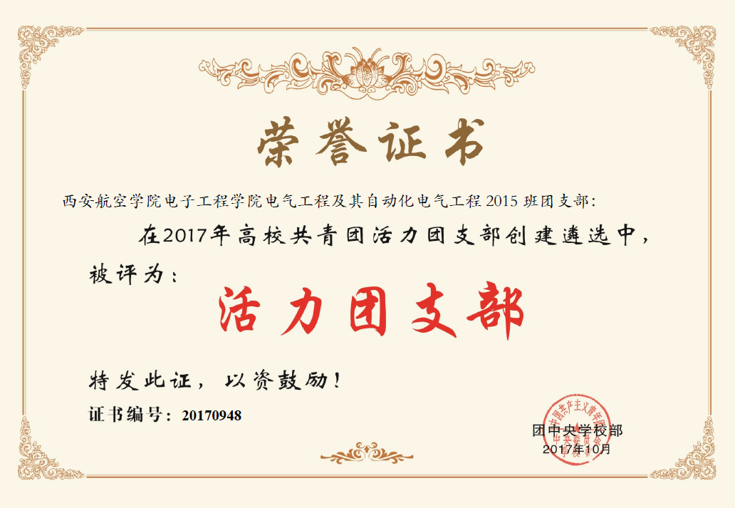 在全国高校活力团支部遴选活动中,贝博官网电子工程学院电气工程及其自动化2015班团支部获得“全国大学生活力团支部”称号,飞行器学院飞行器制造工程2018班团支部获得“陕西省大学生活力团支部”称号。
