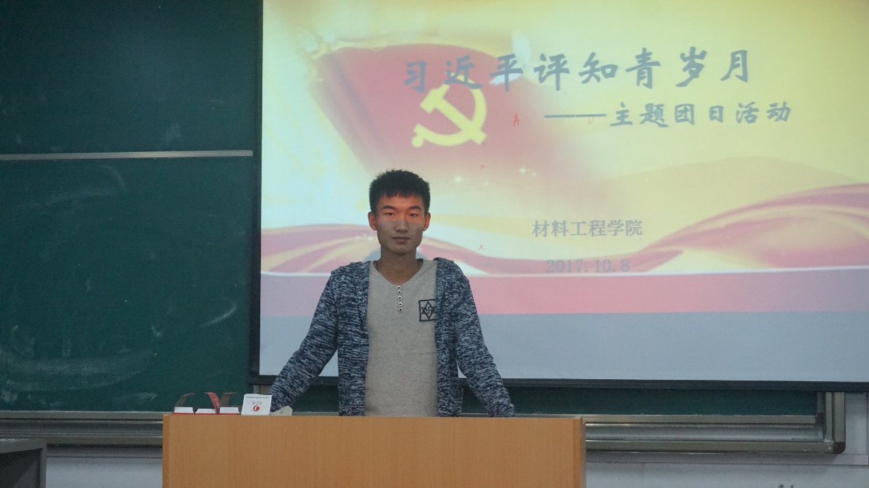 10月11日飞行器学院团总支、学生分会组织开展《习近平的七年知青岁月》学习活动,团总支副书记鲍教修同学谈了自己的认识,他说“《习近平的七年知青岁月》给了我们方向,在最年轻的岁月,习近平总书记把自己的青春用来学习和奉献。作为当代青年,应该尽我们自己最大的努力去做好事、做实事。”