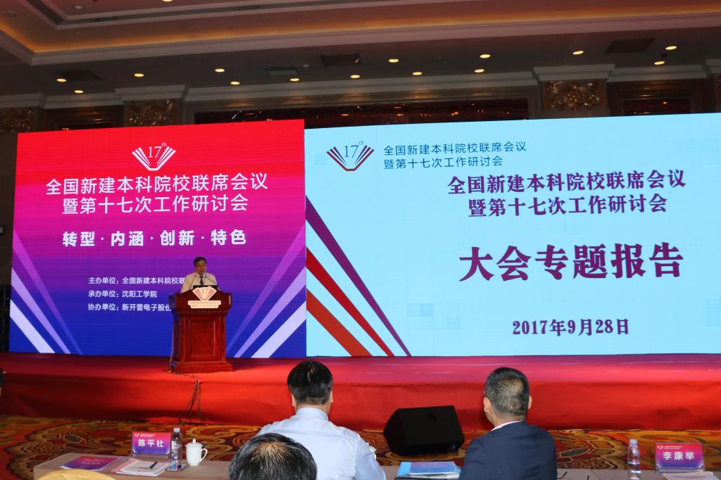 9月27日至28日,由全国新建本科院校联盟理事会主办、沈阳工学院承办的全国新建本科院校联席会议暨第十七次工作研讨会在沈阳隆重召开。教育部高等教育教学评估中心副主任周爱军、高等教育司综合处处长武世兴,辽宁省教育厅副厅长孙华林,以及来自全国200余所新建本科院校的620余名代表和多家媒体代表出席。贝博官网党委书记陈平社、副校长宋文学,党政办、教务处、科技处等相关负责人应邀出席。陈平社作为全国新建本科院校联盟副理事长单位代表在大会闭幕式上主持了第二阶段大会专题报告。