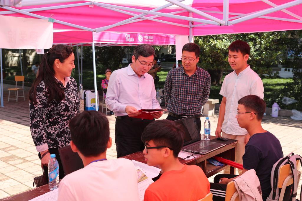 新生报到期间,校领导陈平社、曹庆年、谭少敏、宋文学、李季、宁永录先后多次深入两校区新生缴费处、绿色通道、各学院迎新接待点、学生公寓、校医院等各迎新接待点检查指导工作,详细询问相关工作流程,向参加迎新工作的师生送去了关怀和慰问。