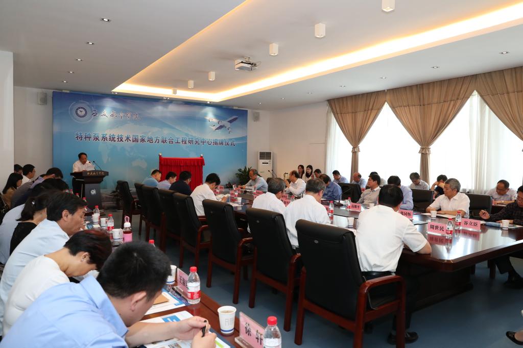 曹庆年校长在揭牌仪式上致辞。他表示,学校将以此次揭牌为契机,厚植发展优势,积极构建长效的产学研合作机制,把特种泵系统技术国家地方联合工程研究中心建设成为行业水平领先、专业技术特色显著和产业技术优势突出的高水平创新平台,努力使其成为应用研究成果向工程技术转化的有效渠道、产业技术自主创新的重要源头和提升企业创新能力的支撑平台,更好地为我国泵类行业产业和我省地方经济社会建设发展服务。
