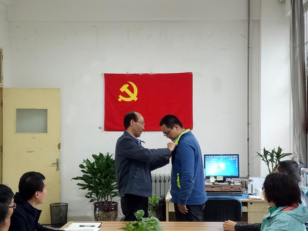 郝红武为学生党员代表佩戴党徽,并对教工支部、学生支部以及与会党员提出了四点要求,一,要坚定共产主义信仰。选择加入中国共产党,就要坚定党的理想信念,增强党性修养。二,要遵照党章严格要求自己。党章是党员的根本章程,严格按照党员的标准做人、做事。三,要做好党员发展工作。学生党员和教师党员的培养、发展是学院党建工作的重要组成部分之一,培养联系人要切实履行职责,做好党员培养教育工作。四,要牢固树立四个意识。佩戴党徽严格按照学院文件要求,在学校中形成一道亮丽的风景线,要求所有党员要牢固树立政治意识、大局意识、核心意识、看齐意识。