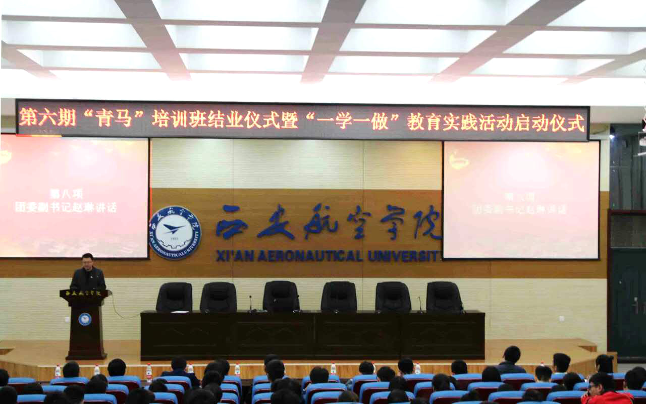 3月28日晚,贝博官网第六期“青年马克思主义者培养工程”结业仪式暨“学总书记讲话做合格团员”(以下简称“一学一做”)教育实践活动启动仪式在阎良校区报告厅举行。校团委副书记赵琳主持启动仪式。阎良校区各二级学院团总支负责人、辅导员及350余名“青马”学员参加了大会。