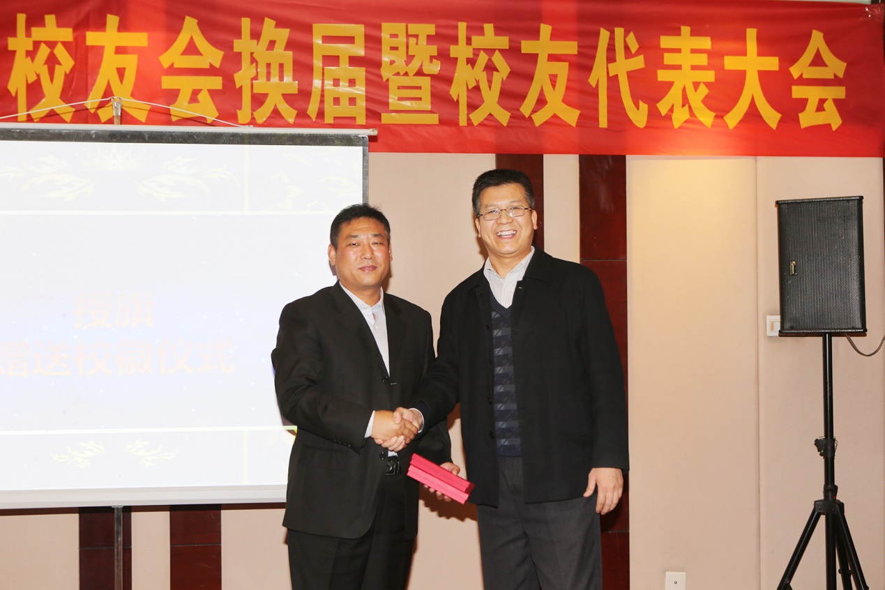 宁永录向河北校友分会赠送校徽