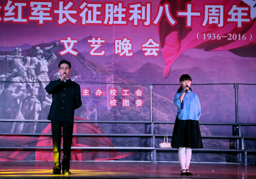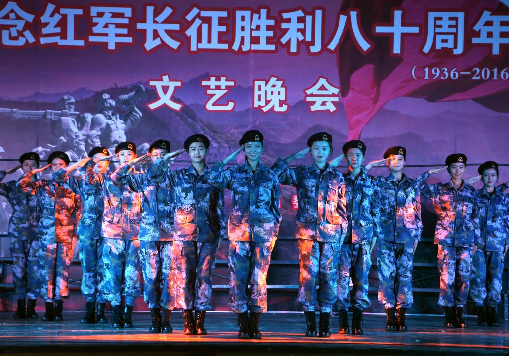 “纪念长征胜利80周年”文艺晚会于10月27日在贝博官网沣惠校区隆重举行。学校领导,各部门、学院负责人和千余名新生一同观看了演出。