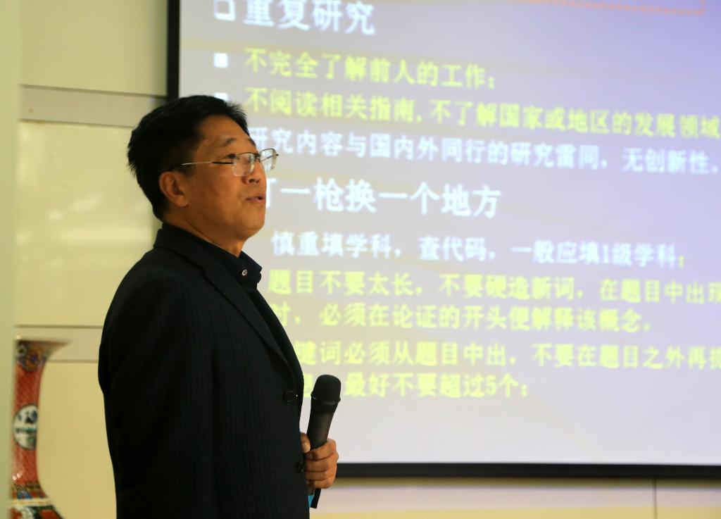 谷立臣教授首先从为什么要申报项目入手,阐述了申报项目对于人才培养、学科建设、学术研究、课堂教学的重要性。以科研、科技成果等概念为基础,重点介绍了如何申报项目及申报的环节、步骤,指出了注意事项,同时结合自身多年申报课题和项目的经验,总结了自己在申报项目过程中的体会及教训。最后,谷立臣教授希望各位教师在申报项目过程中能做到问题很重要、想法很新颖、内容很充实、方案很合理、基础很雄厚、条件很优秀。(文/教师发展中心 赵嘉帅 图/宣传部 实习生 姚冠维)