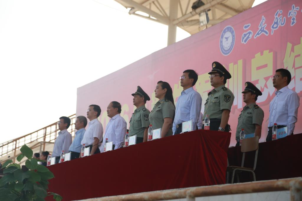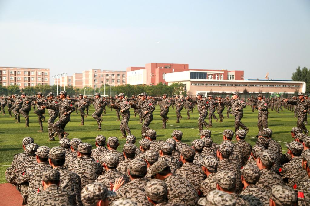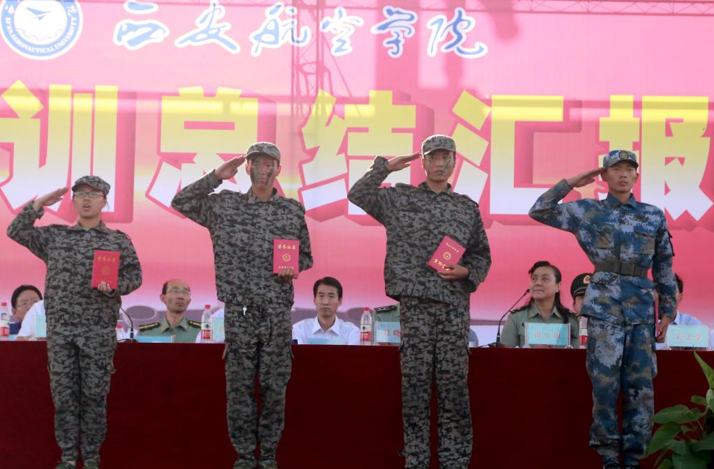 军训汇报表演在嘹亮的军歌声中正式开始。分列式上,所有的方阵列队整齐,步伐一致,气势昂扬。持续十五天的军事训练不仅提高了新生们的军事基本技能和组织纪律观念,也培养了他们吃苦耐劳的精神,充分展现了西航学子勇往直前、顽强拼搏的精神风貌。在汇报表演中,花样队列、军体拳、擒敌拳、匕首操、刺杀操、少林棍、战术表演、擒敌反恐、手语操等科目一次次把汇报表演推向了高潮,学员们用连贯统一的动作,演示了各种实战技法,赢得了在场师生的阵阵掌声。