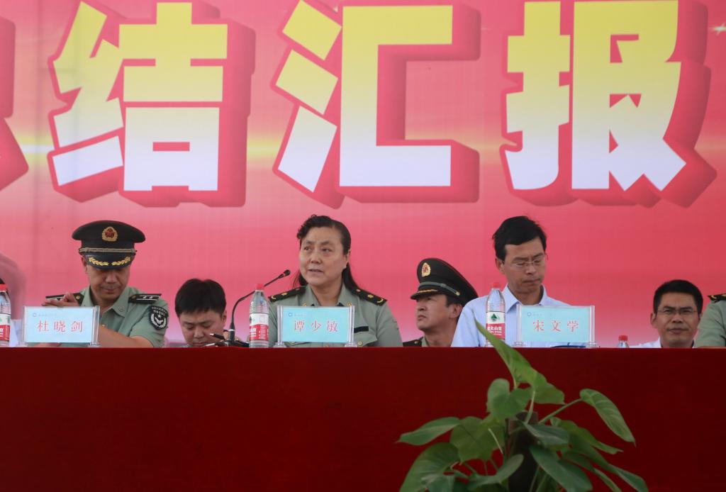 军训团总指挥、党委副书记谭少敏主持会议