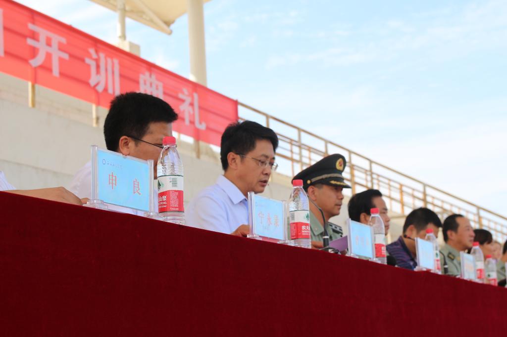 军训团总指挥、党委副书记谭少敏作动员讲话