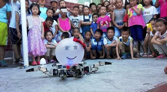 支教队员为孩子们进行机器人表演