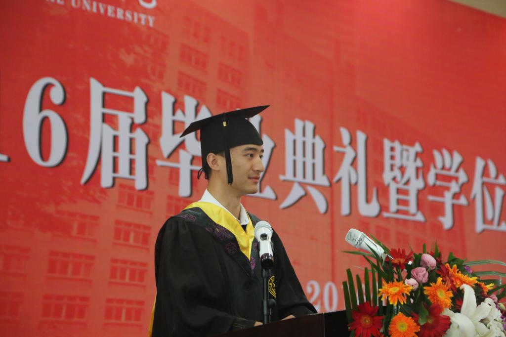 毕业生代表王鹤翔发言