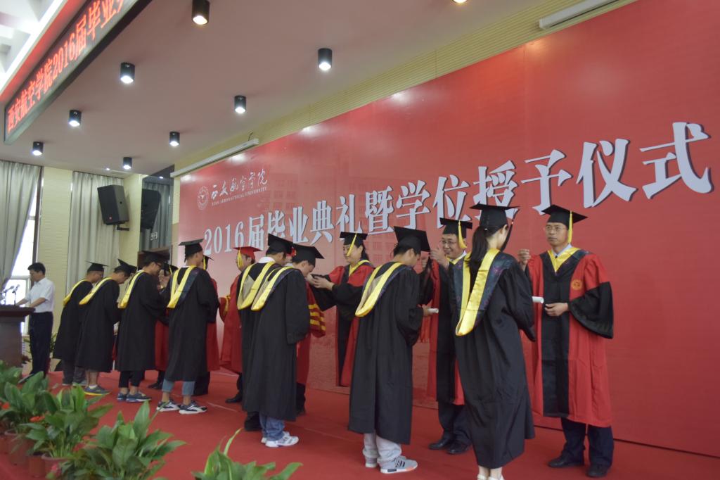 校学位评定委员会主任、校长陈万强教授代表全校师生向顺利完成学业的2016届全体毕业生表示最热烈的祝贺!向为毕业生成长成才付出辛勤劳动的老师们表示衷心的感谢!向倾注心血时刻牵挂同学们健康成长的家长和亲友们表示最诚挚的敬意。他说,几年来你们始终牢记“德能日新”的校训,发扬“激情进取、志在超越”的西航精神,始终以开拓创新的精神面貌,孜孜以求的求知欲望,刻苦努力、奋发有为的学习态度谱写着人生青春的乐章。教室里记下的每一页笔记、校园里听到的朗朗读书声、操场上挥洒的每一滴汗水、实验室每一次精准的操作,都是诠释青春最优美的音符。几年来你们与西航相携进步,互惠发展。在这里你们收获了恩师、挚友、同窗,增长了知识、拓宽了视野、强健了体魄、习得了技能、提升了素质。最后陈校长代表母校送给毕业生三点嘱托:一是希望你们做一个高尚的人,一个有道德的人。二是希望你们能够志存高远,合理规划人生。三是希望你们能激情进取,开拓创新。