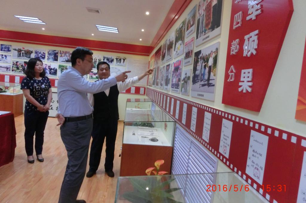 陈书记认真仔细地观看四个板块展板的内容,并与“双拥文化艺术团”的创始人李新建同志亲切交谈,了解了“十八年双拥”活动的初衷、过程和取得的硕果,深怀感情地谈了参观后的感想:一是感动,转业干部李新建同志退休后在其他老同志支持帮助下,为部队建设尽心尽力,谱写了“双拥”工作新的篇章;二是激励,老同志为贝博官网的精神文明建设和校园文化建设增添了浓墨重彩的一笔。他强调,进一步规范充实提升展览的内容和展示形式,紧密结合当前“两学一做”学习教育,总结宣传我们身边的优秀共产党员的典型,建立并发挥“双拥”基地在立德树人中的作用,让社会上更多的人了解,大力弘扬社会主义核心价值观,传播社会正能量。要不断发扬离退休老同志的“五老作用”,发挥余热,传承优良传统和作风,为和谐校园添砖加瓦。通过贝博官网“馆文化”建设,加强全校师生的师德、师风、学风、校风的宣传教育,树立正确的世界观、人生观、价值观,不断提升贝博官网的文化软实力,创建和谐的校园文化。(文/离退休工作处 张建 图/王伟旗)