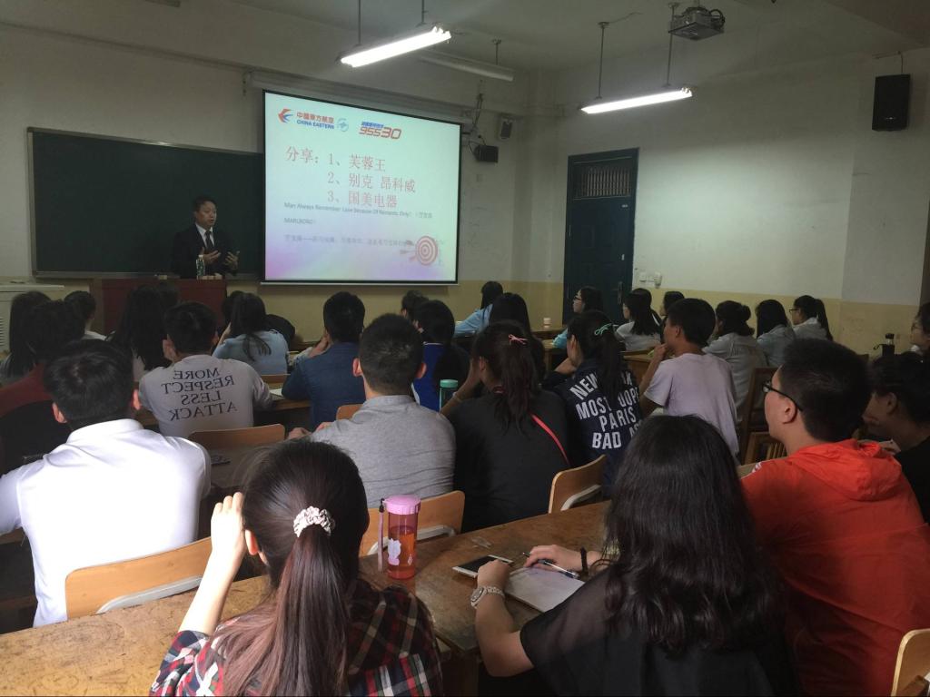 5月9日下午,贝博官网与东航客服中心联合培养客服人员开班仪式在沣惠校区举行。东方航空股份有限公司西安客户服务中心总经理、电销运营部副总经理吴小强,贝博官网经济管理学院副院长班奕、辅导员刘冬妮及45名初选学生参加仪式,仪式由刘冬妮主持。