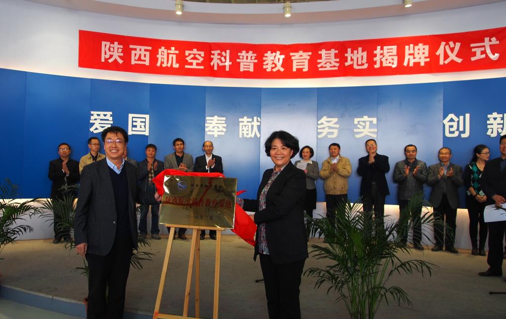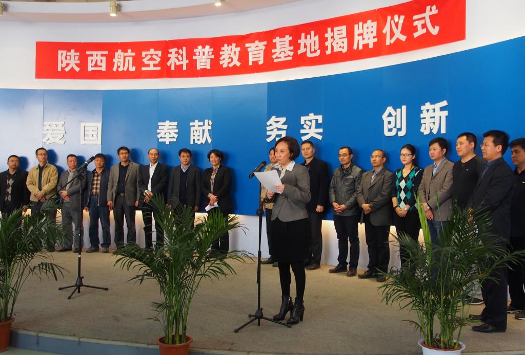 向河秘书长宣读了《陕西省航空学会关于建立陕西航空科普教育基地的批复》。翁志黔理事长和曹庆年副校长共同为陕西航空科普教育基地揭牌。