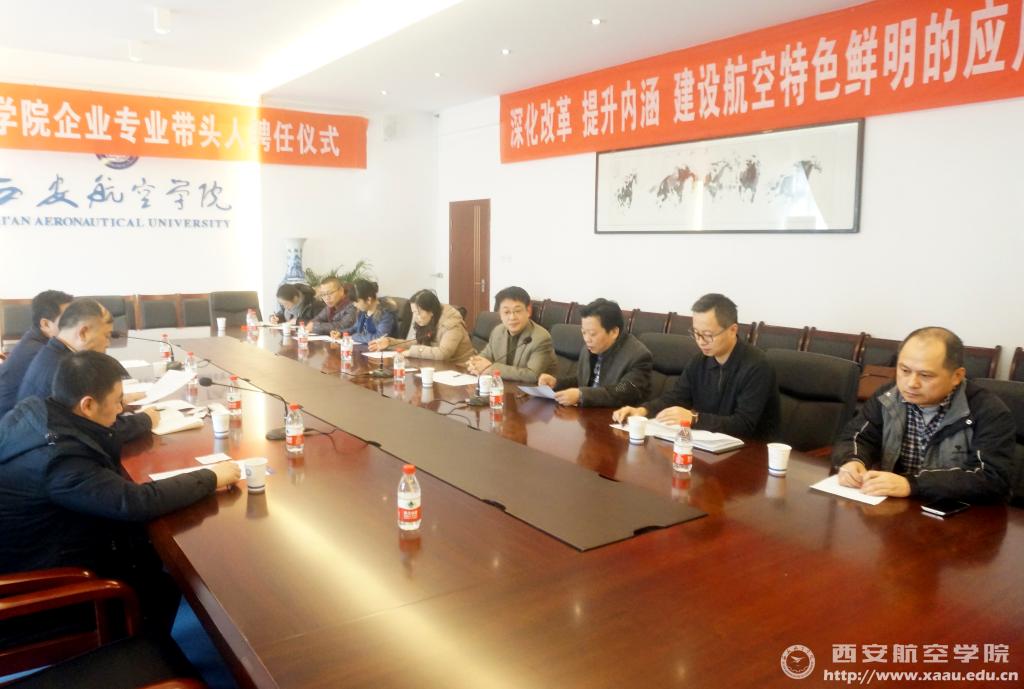12月30日上午,电子工程学院企业专业带头人聘任仪式在阎良校区会议室举行。副校长曹庆年,电子工程学院院长杨勇、副院长张军、西飞公司研究员王允、西飞公司研究员级高级工程师李凯、大唐移动公司高级工程师杜懋江及学院办公室、各教研室主任参加聘任仪式。会议由杨勇主持。
