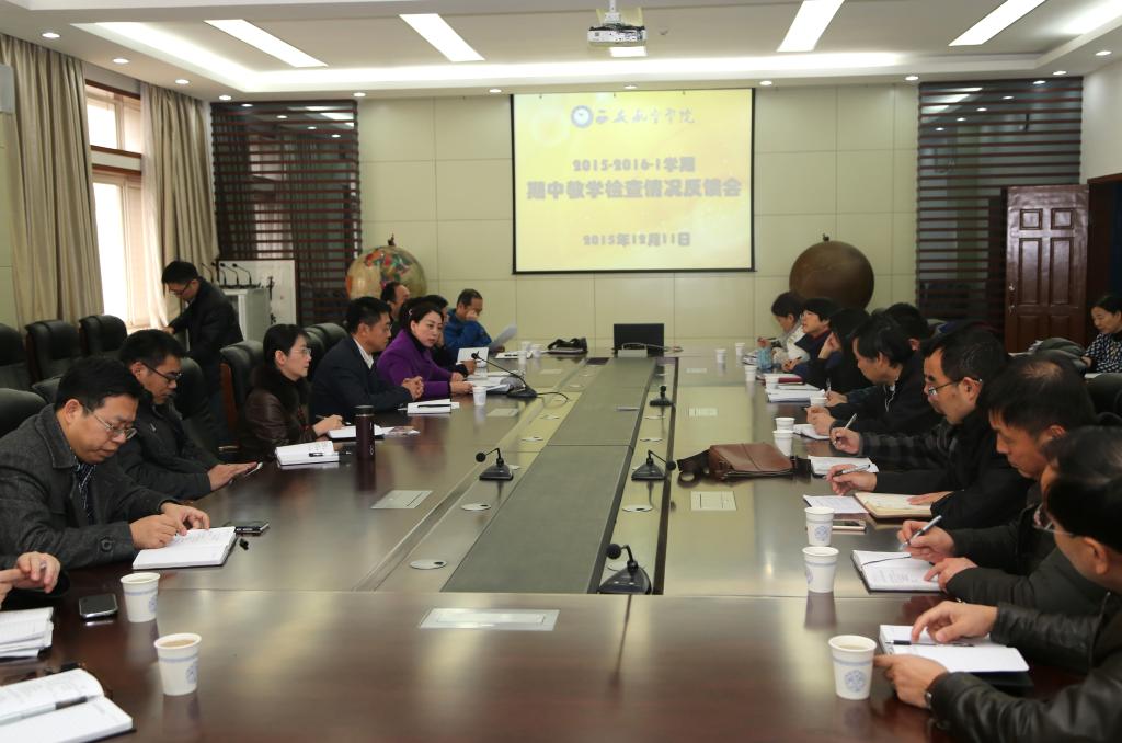 12月11日上午,本学期期中教学检查总结反馈会在沣惠校区召开。督导办、教务处、学生处、教师发展中心、后勤保障处、图书馆及各院(部)负责人参加了会议。会议由副校长曹庆年主持。