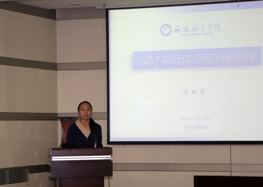 10月23日下午,贝博官网国家自然科学基金青年科学基金项目获得者、能源与建筑学院讲师方向青博士在沣惠校区图书馆学术报告厅,为全校师生做了题为“心动不如行动----开启科研旅程”的学术报告。副校长张同怀、部分二级学院负责人及三百余名师生参加报告会。报告会由科技处副处长赵银燕主持。