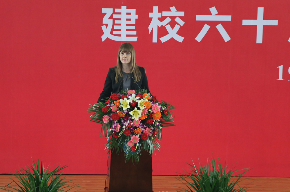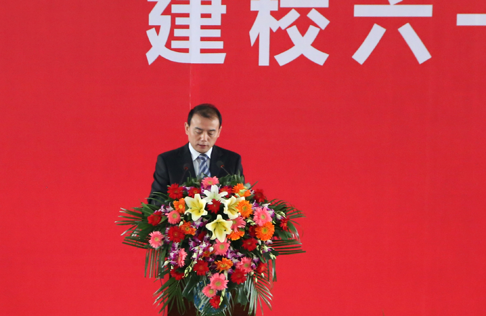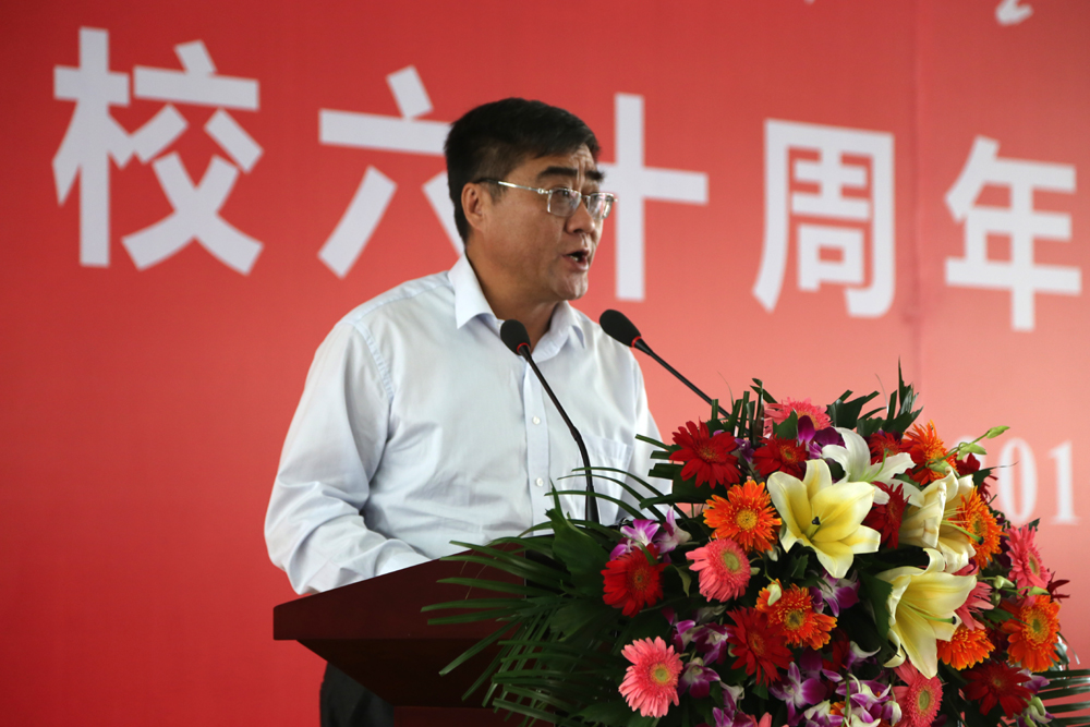 陈万强在讲话中回顾了学校60年的发展历程。60年来,学校始终把追求卓越作为学校一以贯之的优秀品质,把改革创新作为学校跨越发展的不竭动力,把服务社会作为学校矢志坚守的神圣职责,把传承先进文化作为学校责无旁贷的永恒使命。60年来,激情进取,不断超越,奏响了一曲崇德笃行、大气包容、奋发有为、自强不息的绚丽乐章。
