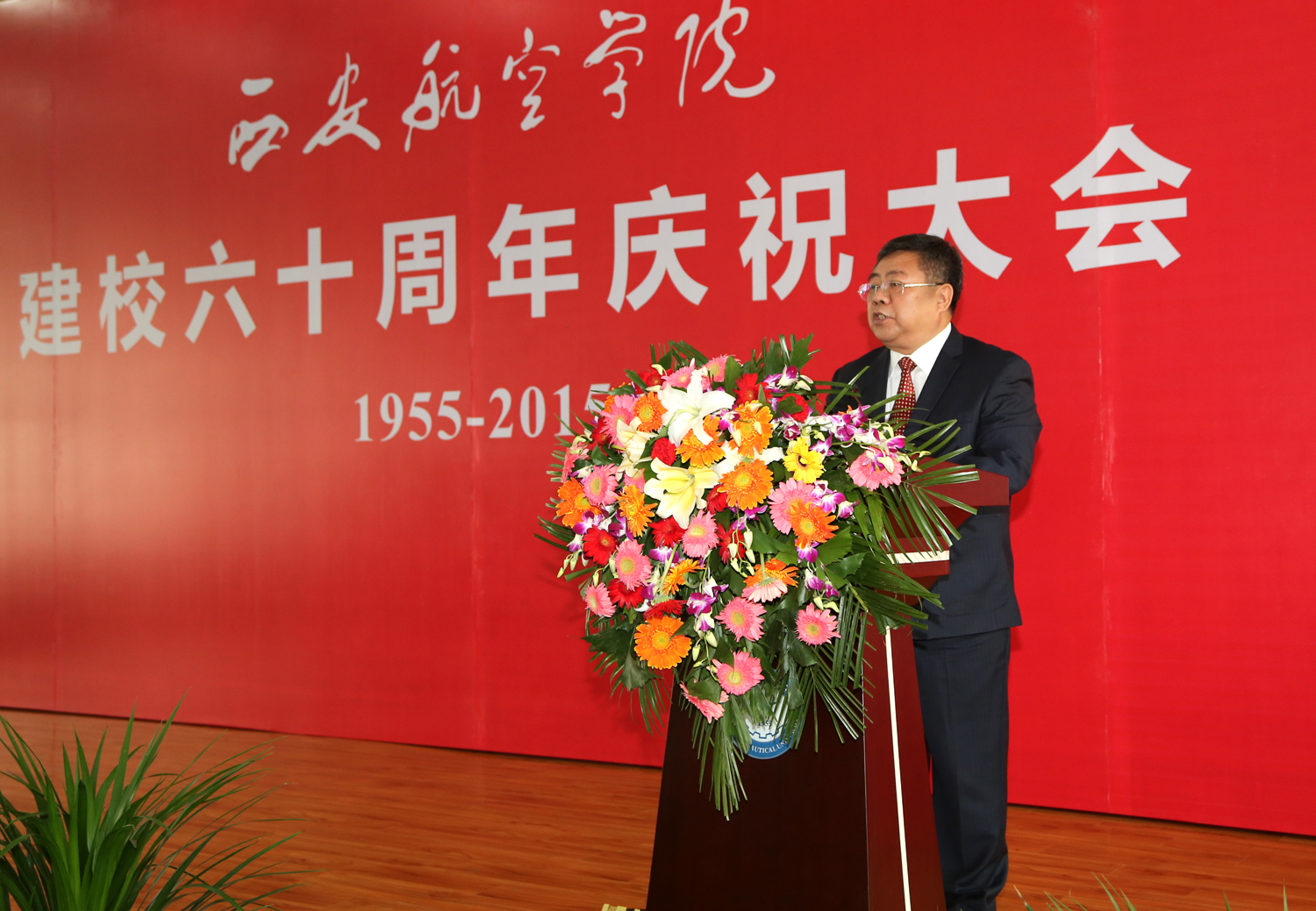 校长陈万强致辞,他首先代表全体师生员工向莅临大会的各位领导、嘉宾表示热烈欢迎,向西航校友致以亲切问候,向多年来一直关心、支持BB贝博艾弗森官方网站建设与发展的各级领导、各界朋友表示深深的谢意,向60年来辛勤耕耘、奋斗不息,为学校的建设发展倾注心血的老领导、老同志、全体教职员工表示最崇高的敬意。