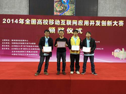 12月13日至15日,2014年全国高校移动互联网应用开发创新大赛总决赛在北京联合大学成功举办。此次比赛由教育部科技发展中心主办,互联网应用创新开发联盟,中国电子学会云计算专家委员会,Google公司、北京联合大学等单位联合承办。作为目前国内针对Android移动设备开发最有影响力的比赛,吸引了全国1200多支团队参加。经过全国五大赛区的比赛,最终125个高校晋级全国总决赛。