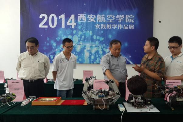 当天下午,机械学院党支部书记王奇利陪同廖庆龙一行参观了校史馆、航空馆、实验实训中心以及2014年学院实践教学作品展等。(机械学院 孙茉莉)