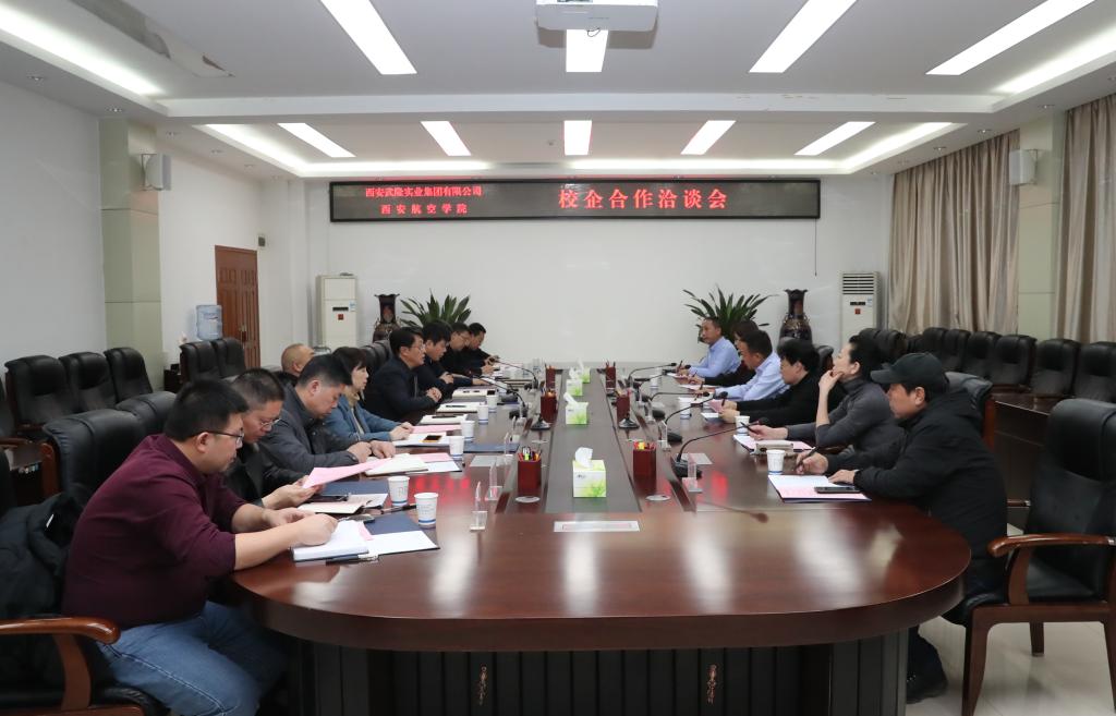 11月23日下午,西安武隆实业集团有限公司董事长王空军一行6人来校调研交流,推进校企合作事宜。学校领导曹庆年、曹渊、李季、宁永录、金文,党政办公室、基建处、招生就业处、科技处、飞行器学院单位负责人参加了座谈会。座谈会由学校党委副书记、纪委书记、省监委驻学校监察专员曹渊主持。