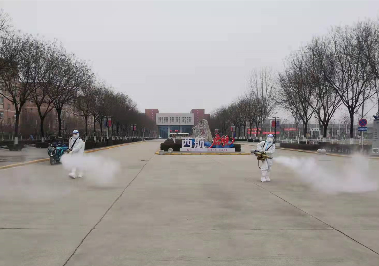 保卫处高磊说:“伴随着“轰隆隆”的机器声,校园环境消杀工作有条不紊地进行着,从学校大门口到教学楼,从教室到卫生间,从宿舍到操场,窗台、楼梯、阳台、大道小径,角角落落,全面消杀,不留死角。我们用行动诠释着奉献的姿态,用汗水注解着付出的模样,用双手筑起西航安全健康的“防火墙”。“海压竹枝低复举,风吹山角晦还明”,我们终将,也一定会迎来抗击疫情胜利的春天!我是西航一员我骄傲,西航加油!”