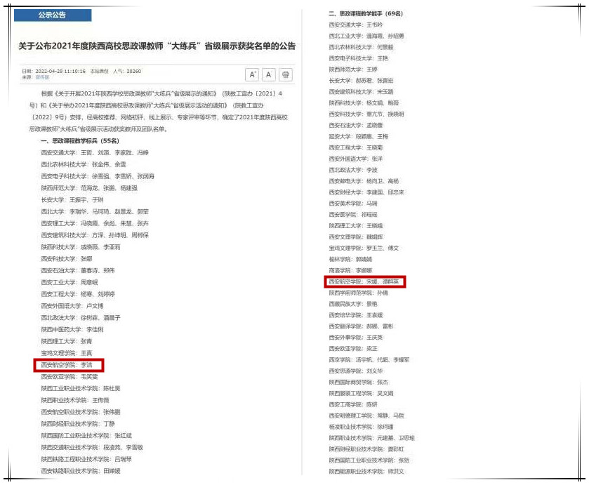 4月28日,中共陕西省委教育工委、陕西省教育厅公布了《2021年度陕西高校思政课教师“大练兵”省级展示获奖名单的公告》,贝博官网马克思主义学院教师李洁荣获“思政课程教学标兵”称号,宋媛、谭群英荣获“思政课程教学能手”称号。