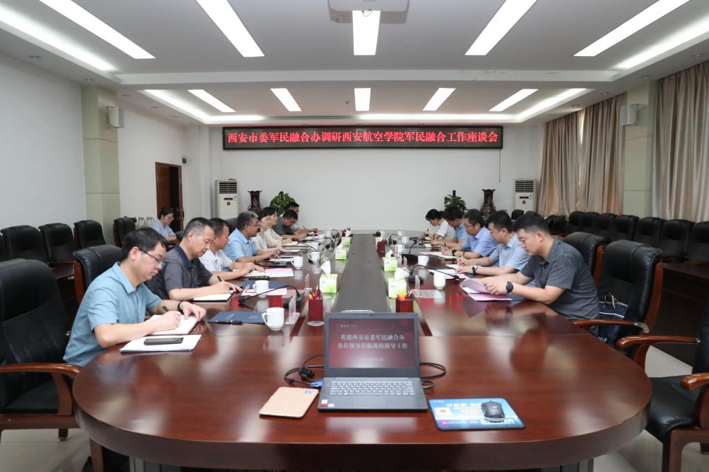 8月5日上午,西安市委军民融合办副主任岳智宏,市委军民融合办秘书处副处长王冬,发展服务中心副主任商敖一行5人来贝博官网调研交流。贝博官网校长祁玉龙,副校长金文,发展规划处、科技处、士官学院、液压技术研究院、校办工厂等单位负责人参加了调研座谈会。座谈会由祁玉龙主持。